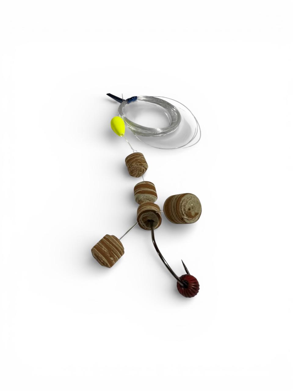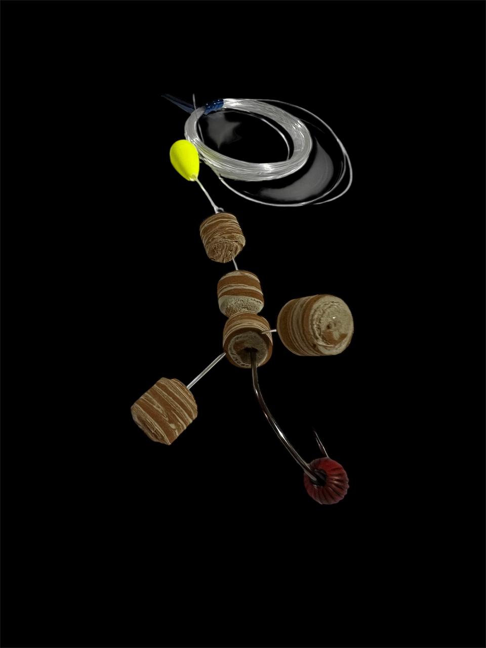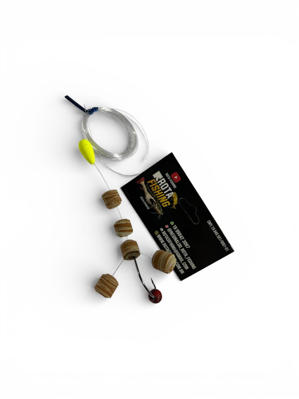 COD 02 -Encaixado 12 mm mesclado anzol robaleiro 2/0 miçanga Sorocaba vermelha chicote de 4,5 m com boia guia by rota Fishing